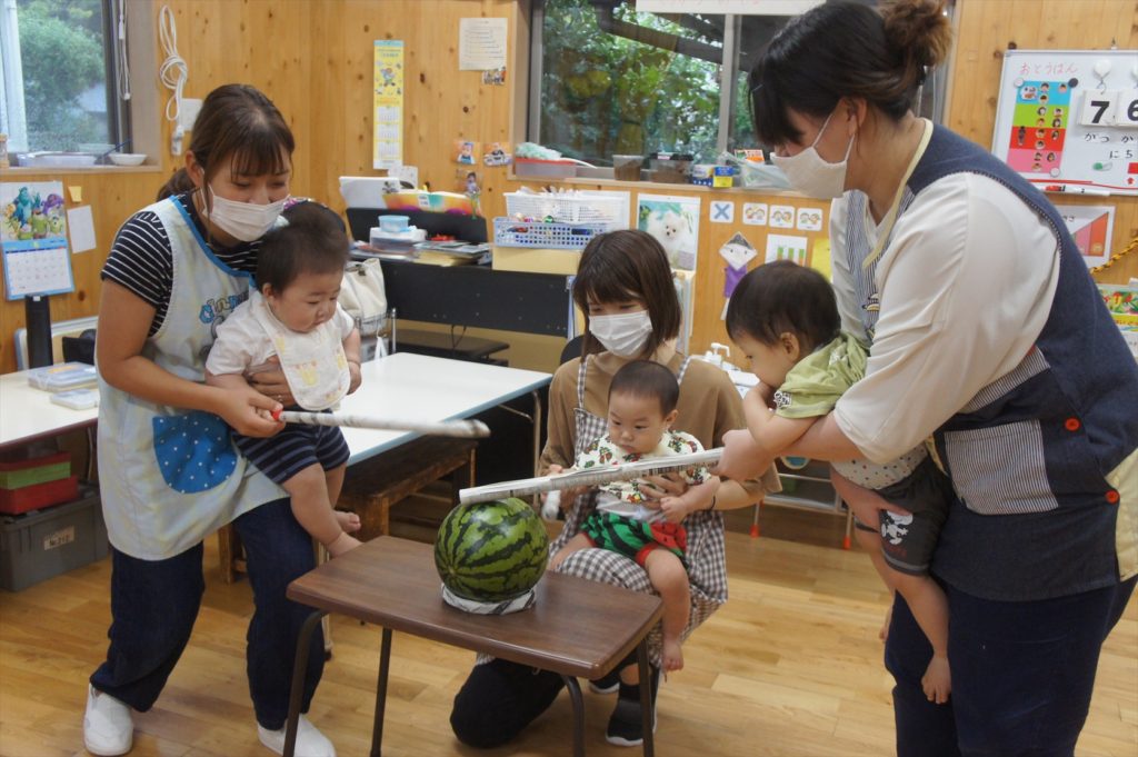 ひよこ組さんもスイカ割りに挑戦!