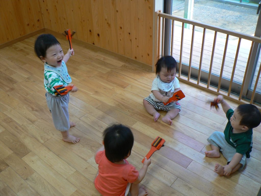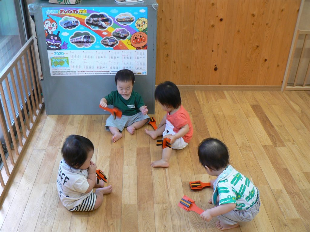 鳴子にも興味しんしんなひよこ組さん。曲に合わせて元気に鳴らしてくれました。