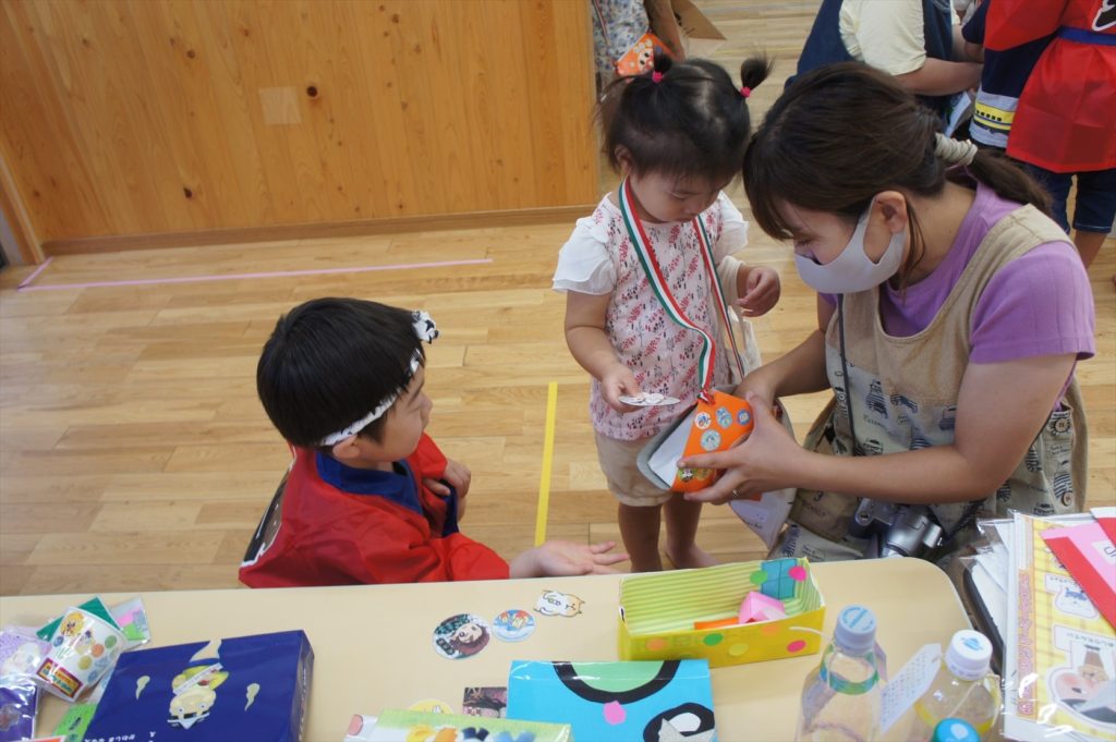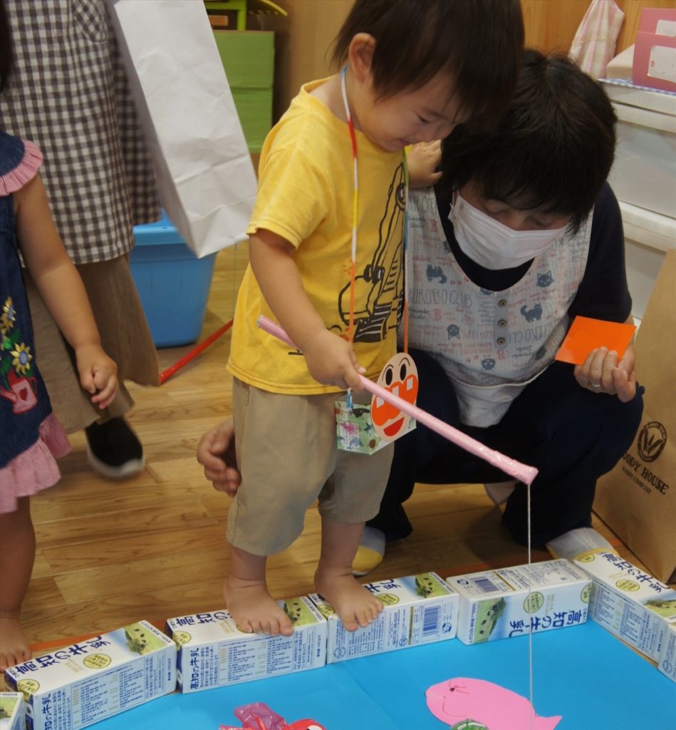 白ゆりの園児みんなで、夏まつりを行いました!みんなで製作したたべものなどを売るお店やさんや、さかなつりやくじびきなどのゲームをしてみんなで楽しく遊びました。