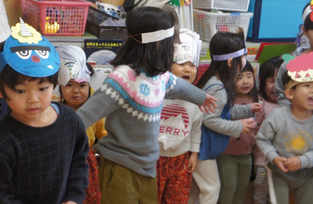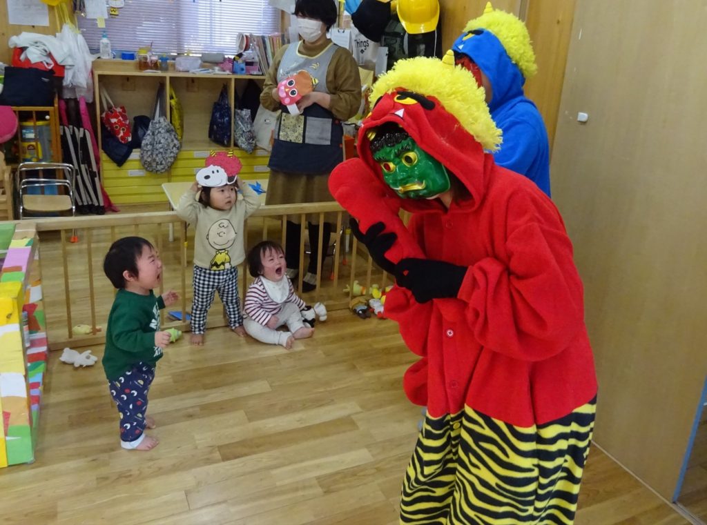 ひよこ組さんは初めて見た鬼さんにみんなびっくり!!