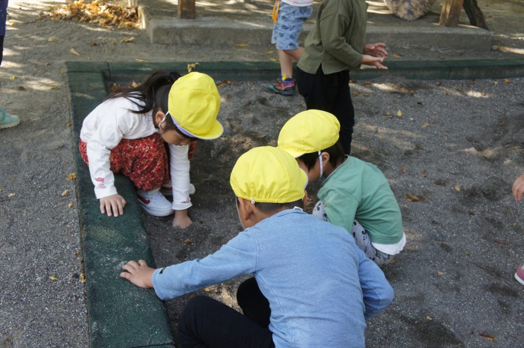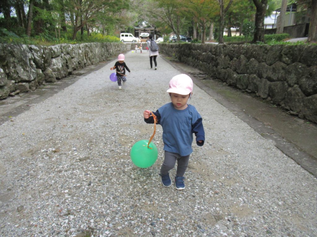 うさぎ組さんは神社で風船で遊んだり、どんぐりも夢中でたくさん拾いました!