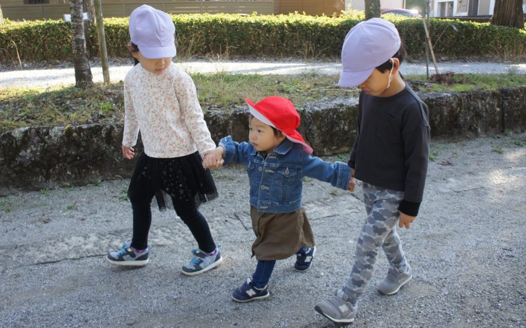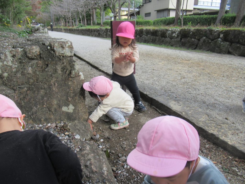 ひよこ組さんは、ぞう組年長さんと一緒に神社にお散歩に行きました。おにいちゃん、おねえちゃんに一緒に遊んでもらってひよこ組さんも楽しく過ごせました!