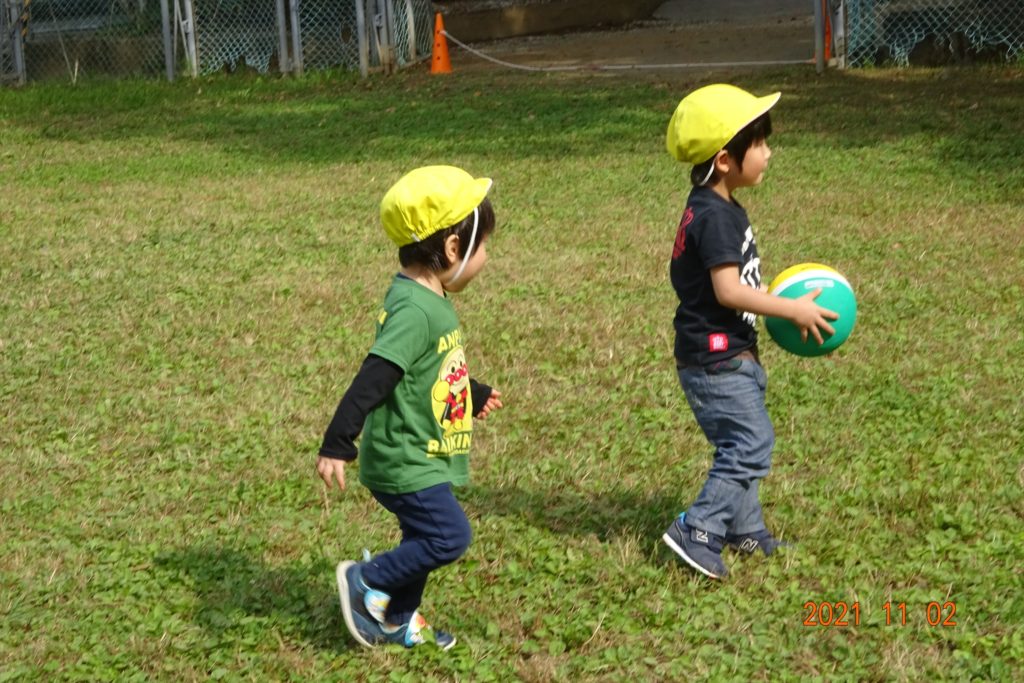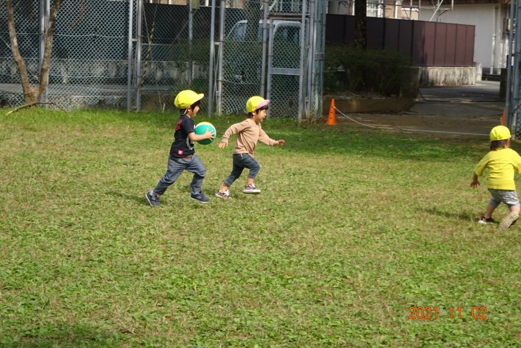 きりん組さんは公園で元気に仲良く遊具やボールでたくさん遊びました!