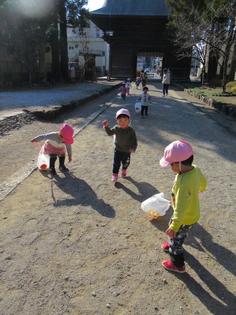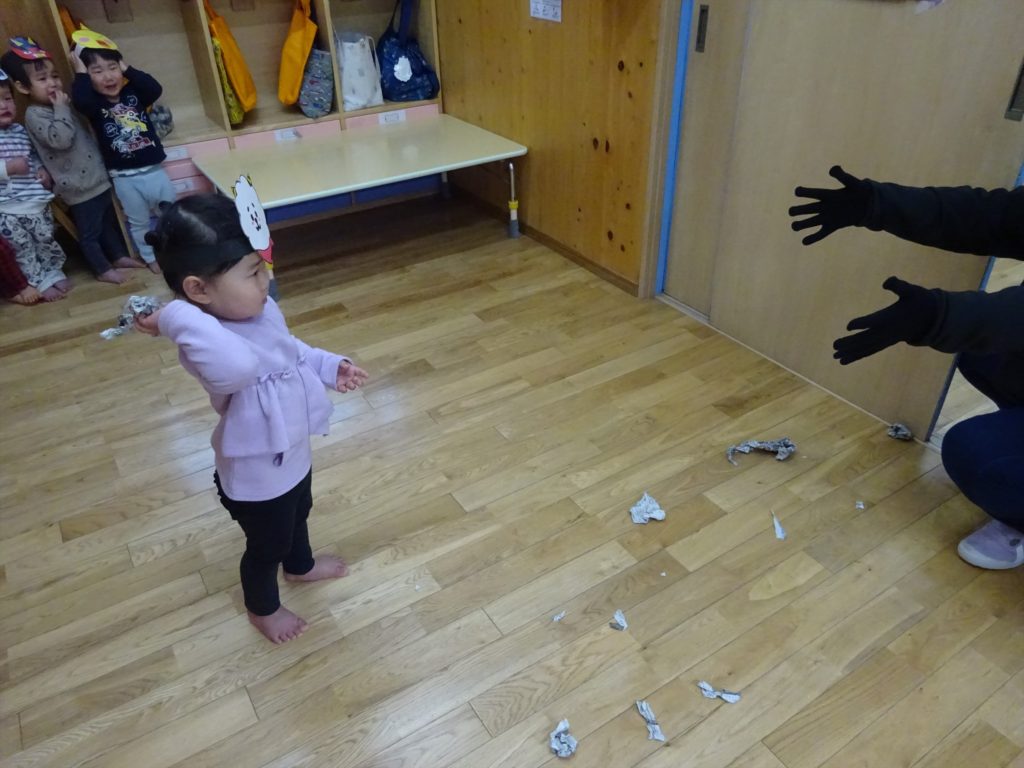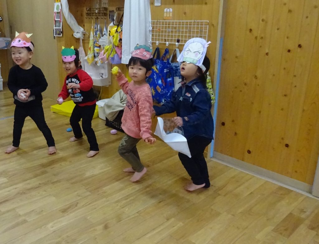 たこあげと豆まき 2022/2/17 行事 1月に、各クラスでたこあげを行いました! それぞれ作った凧で、元気に走り回ってたこあげを楽しみました! ひよこ組さんも園庭で先生たちとたこあげに挑戦! *** 2月は豆まきを行いました!今年はクラスごとで、規模も縮小して行いました。 鬼を怖がって泣いてしまう子もいましたが、みんなで立ち向かって鬼を追い払いました!