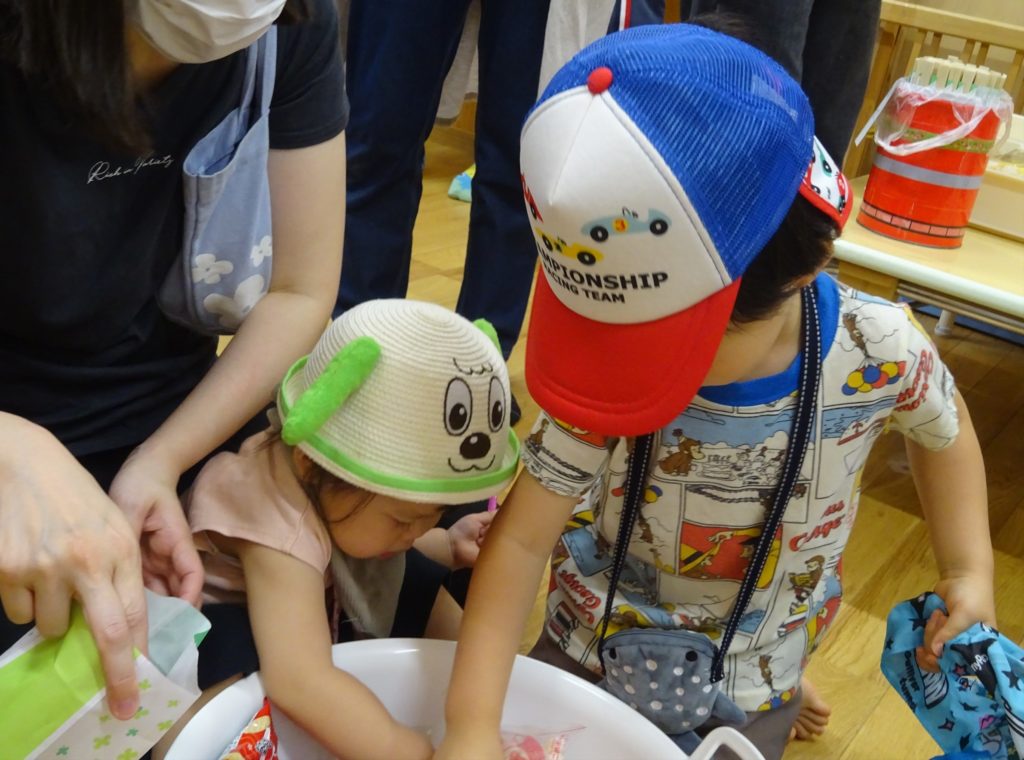 お菓子のつかみ取りでは、みんな袋いっぱいにお菓子を詰め込んで嬉しそうでした!