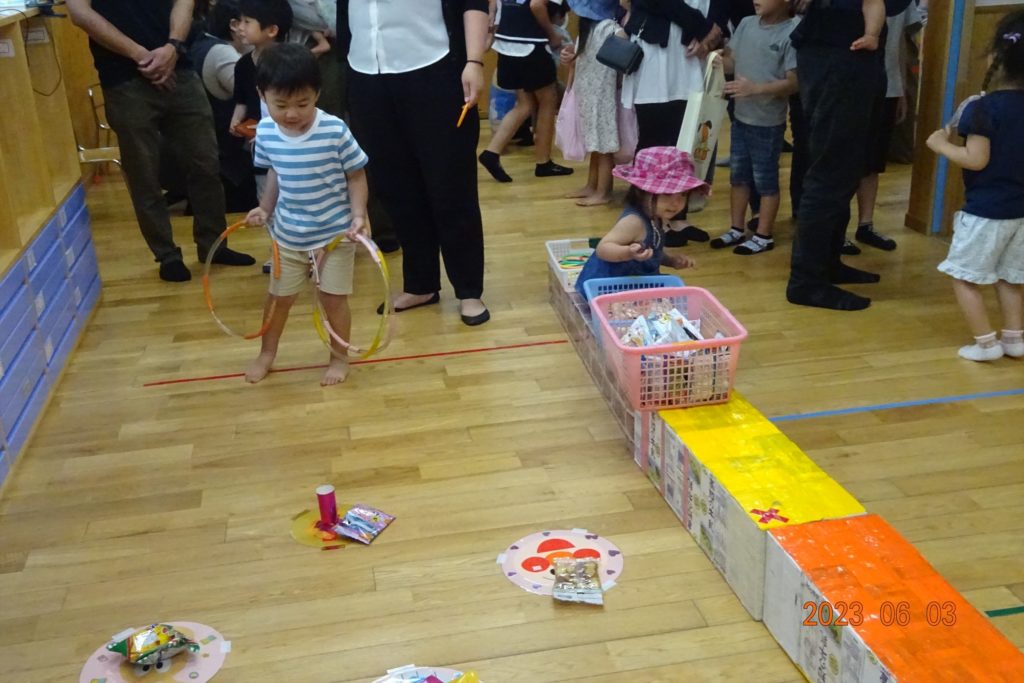 わなげにボウリング、くじびき!何回も挑戦する子もいたり、みんなでわいわい楽しみました!