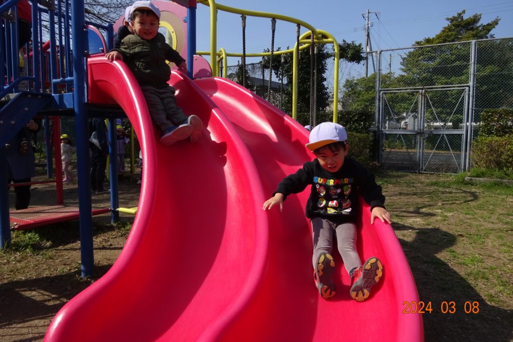3月には、ぞう組さんのお別れ遠足!今年はきりん組さんも一緒に公園まで行きました!