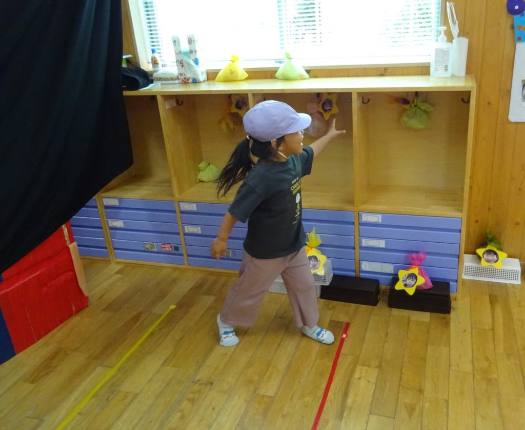 火災の避難訓練と災害時の引渡し訓練を行った後は、宝探し!自分の写真がついたものを探しました!