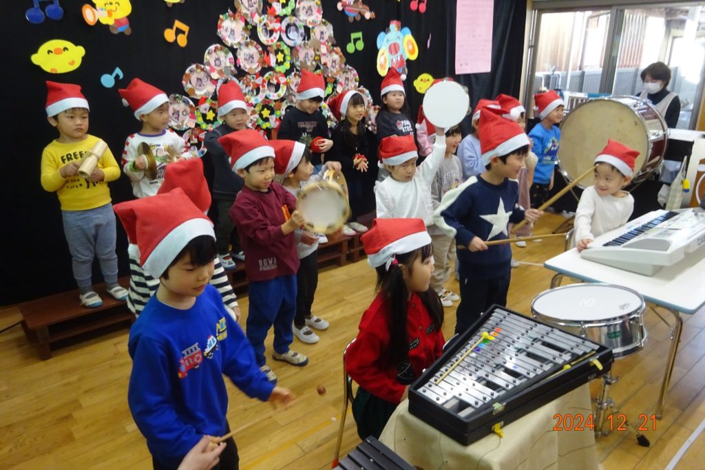 ひよこ組さんは初めてのクリスマス会!緊張したけどみんな頑張りました!