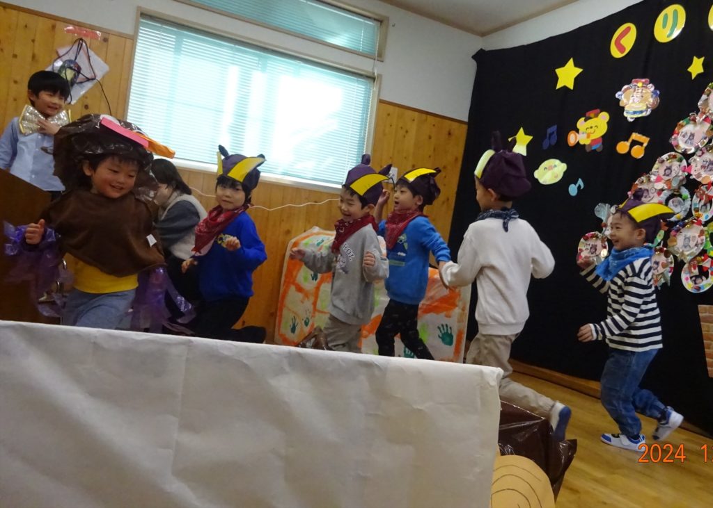 うさぎ組さん・きりん組さんも合奏したり踊ったり、劇をしたりと色々なことに挑戦しました!