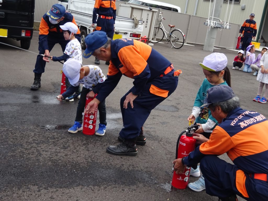 11月に入り、避難訓練を行いました!毎月行っていますが、今回は一宮消防団の方々にご協力いただき、今年移転して新しく建てられた消防団の屯所にもお邪魔させていただきました。