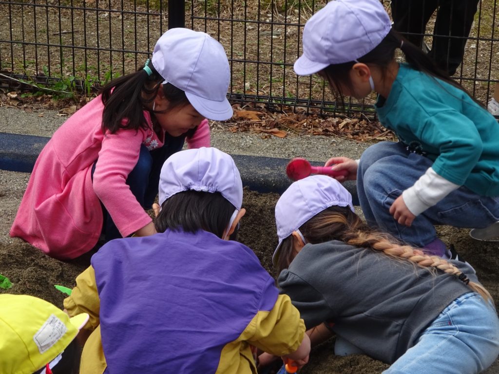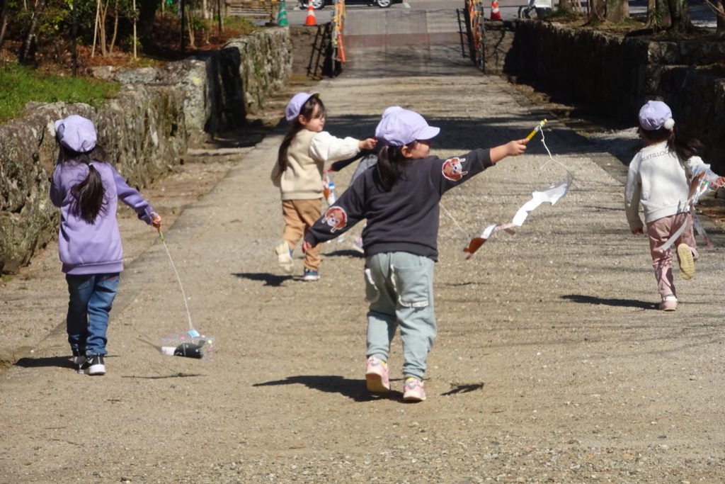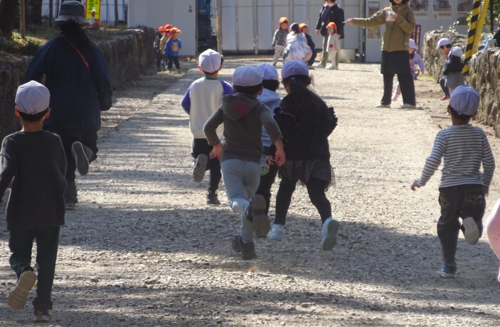 まだまだ寒い中でも子どもたちはとっても元気!走って遊んで楽しみました!